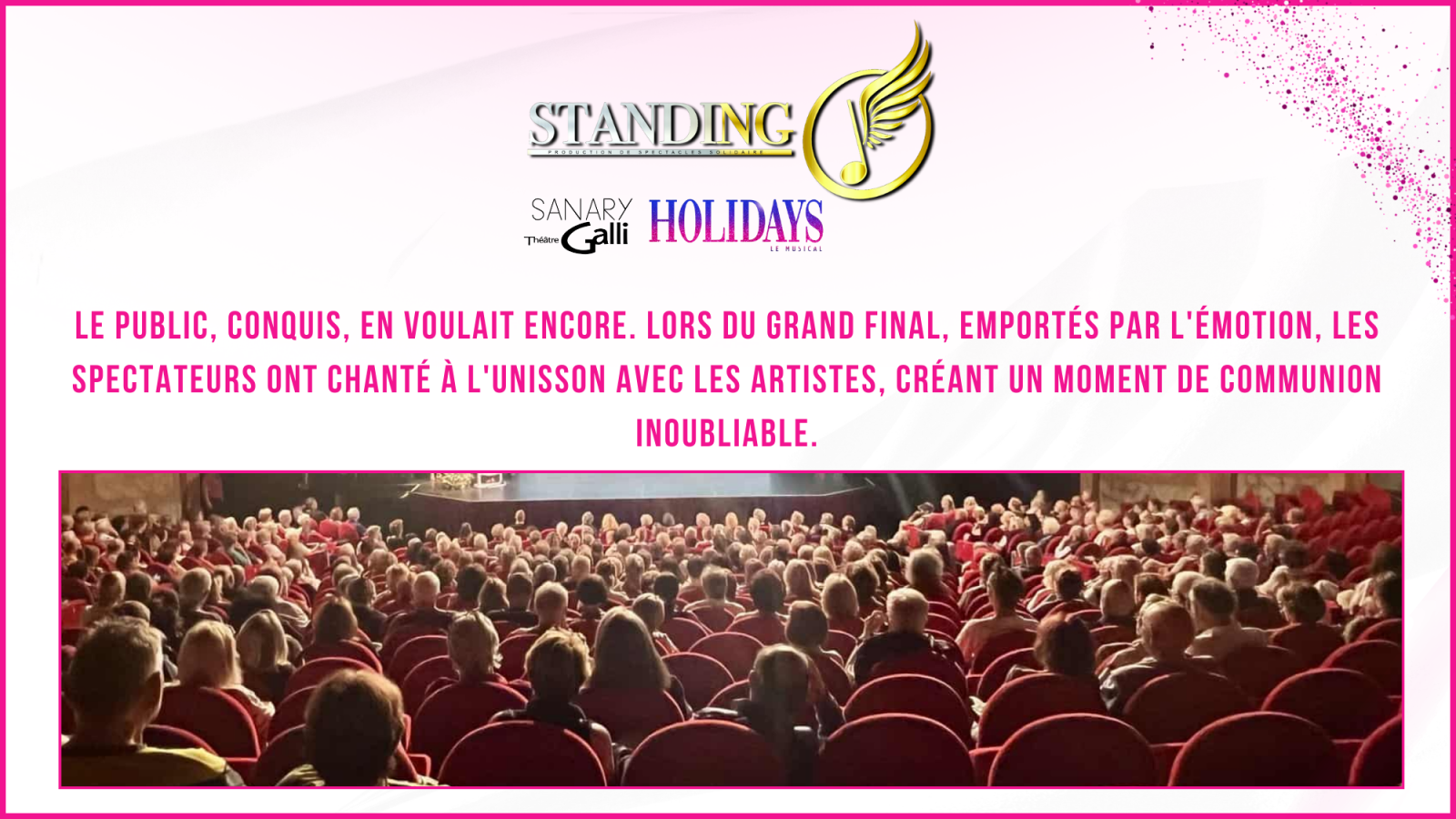 Entre Contes et Sanary, HOLIDAYS LE MUSICAL a offert deux soirées magiques, prouvant une nouvelle fois que la puissance de la musique, le talent des artistes et la générosité des scènes locales peuvent créer des souvenirs inoubliables. Deux dates, deux salles, un même élan : celui d’un public conquis par une performance flamboyante.